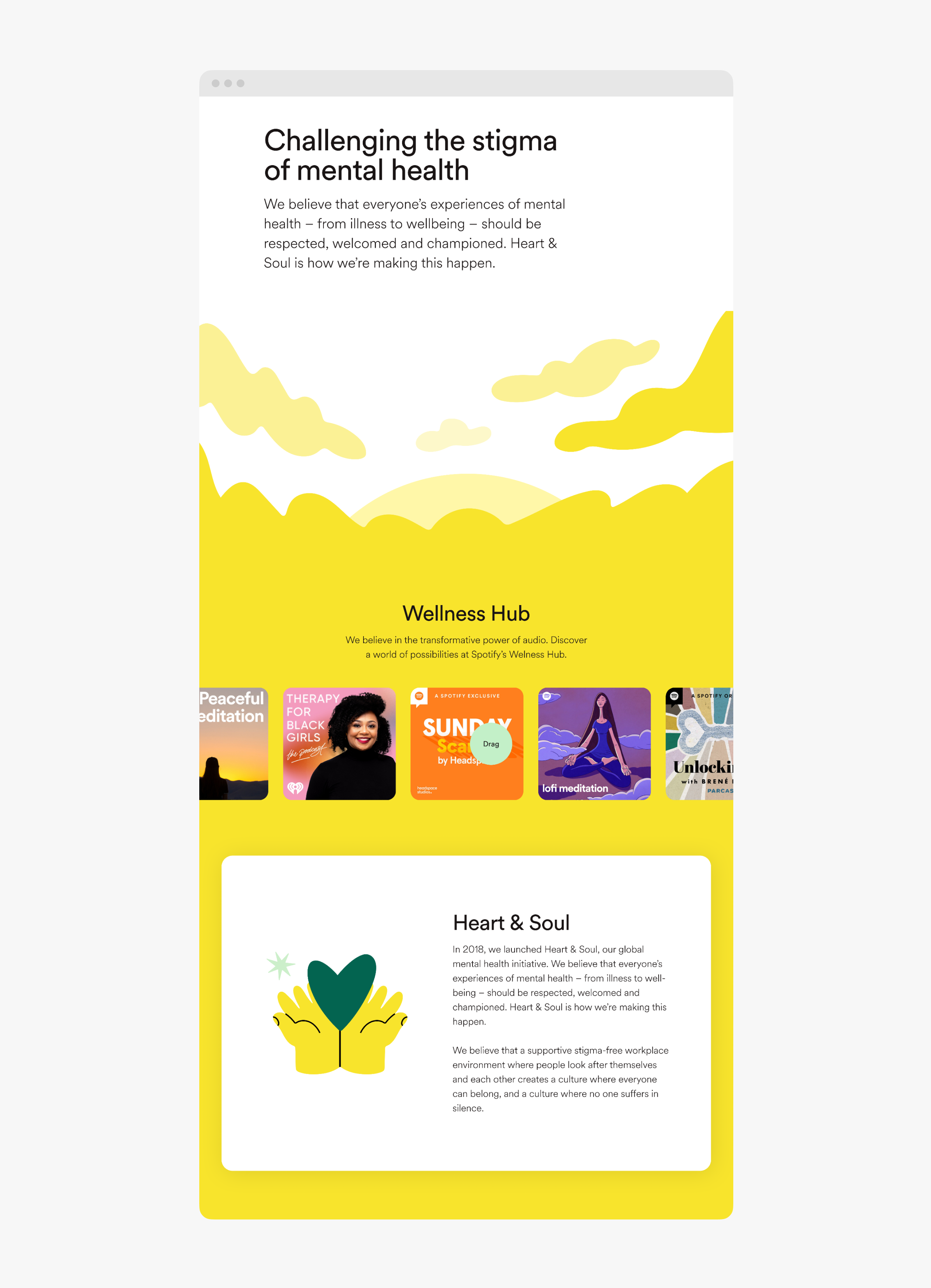 The challenge was to design a dedicated microsite that felt distinct yet integrated, aligned with both Spotify’s values and their ESG commitments. The new experience needed to support compelling storytelling, reflect Spotify’s commitment to inclusion, and provide internal teams with the flexibility to manage and scale content over time.